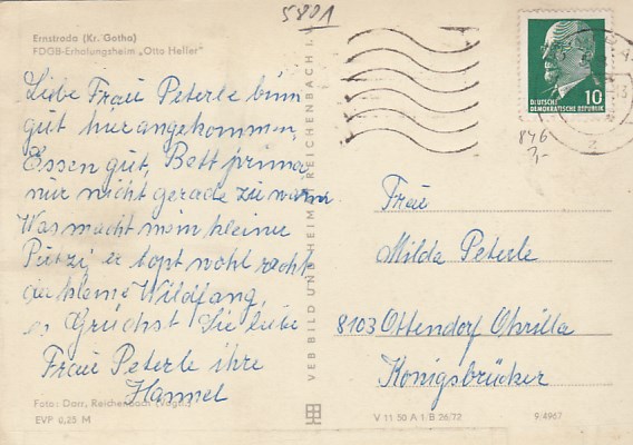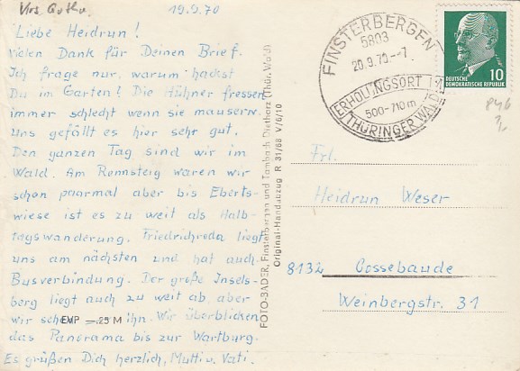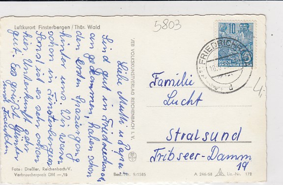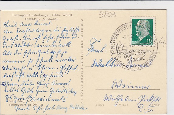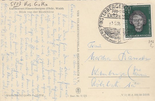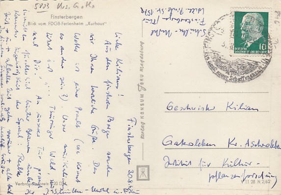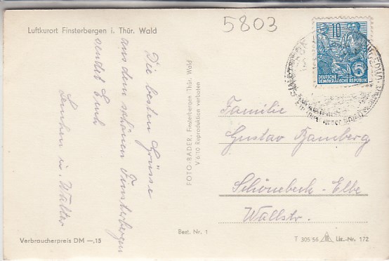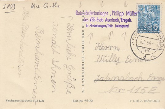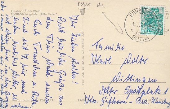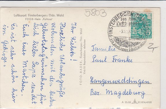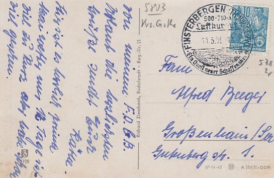 Engelsbach in Thüringen Landpoststempel Friedrichroda 1953