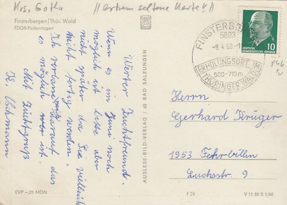 Finsterbergen in Thüringen Landhaus Wiesengrund 1967