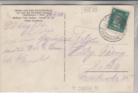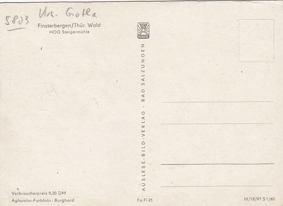 Finsterbergen in Thüringen Restaurant Steigermühle 1928
