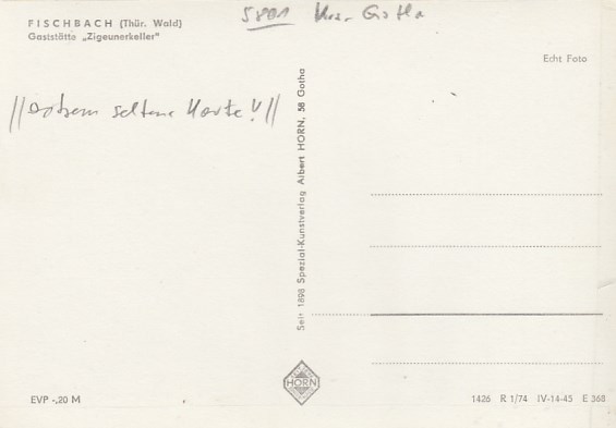 Fischbach in Thüringen Gaststätte Zigeunerkeller 1972