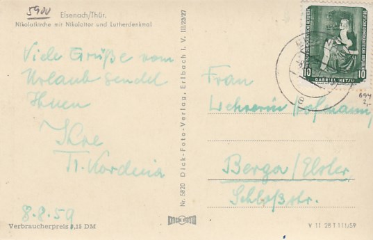 Eisenach in Thüringen Landpoststempel Wilhelmsthal 1957