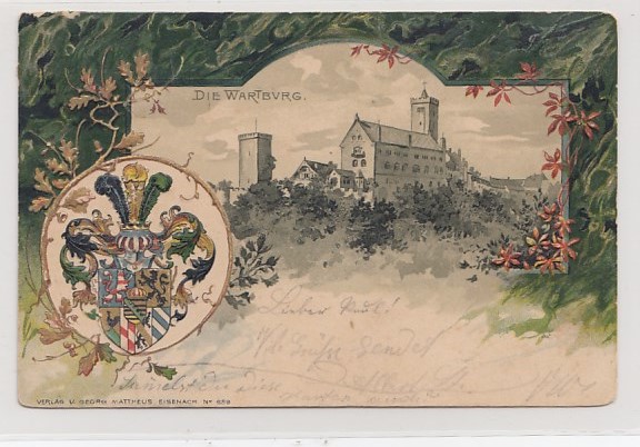 Eisenach in Thüringen Prägekarte mit Wappen 1901