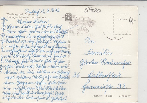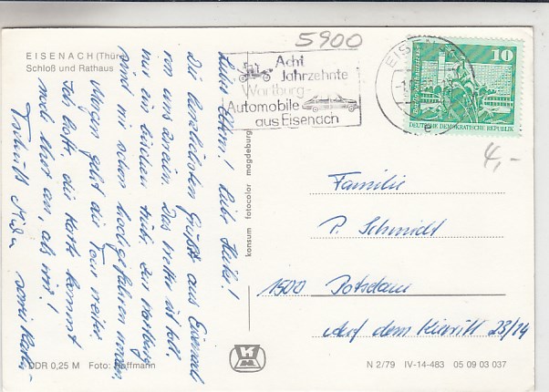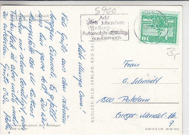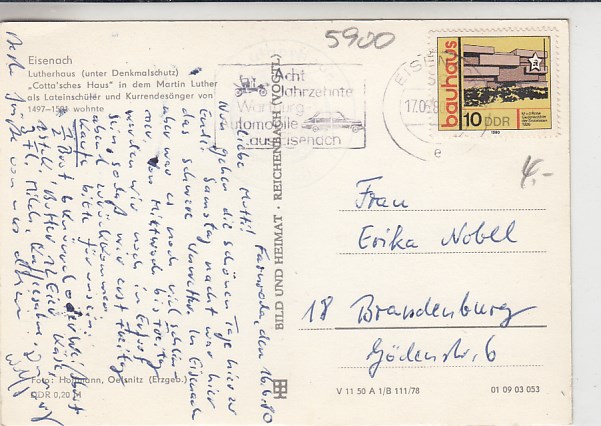 Eisenach Thüringen Anlaß Postkarte mit Sonderstempel 1988