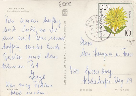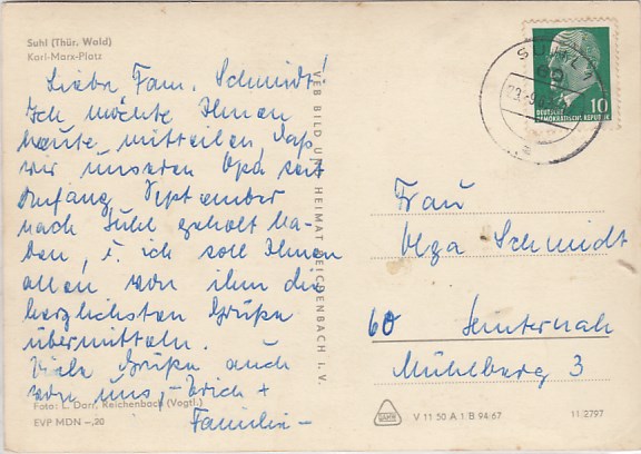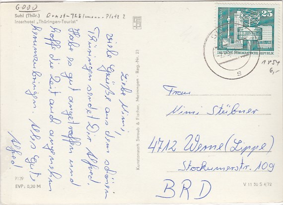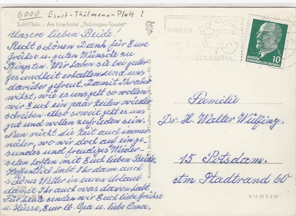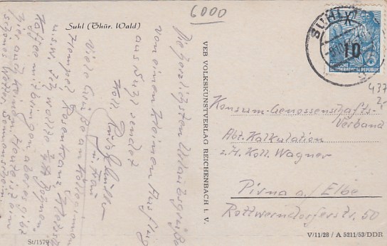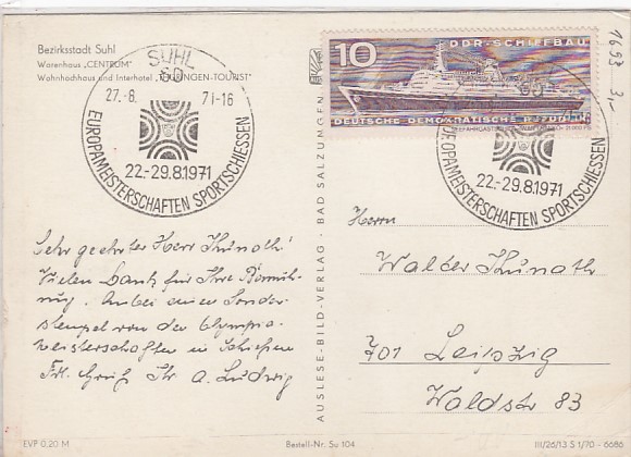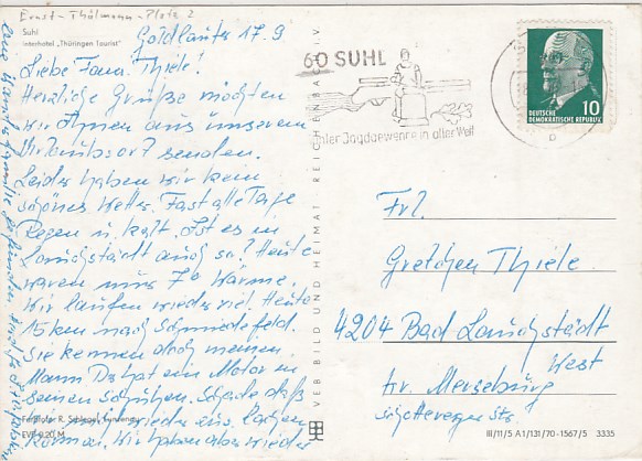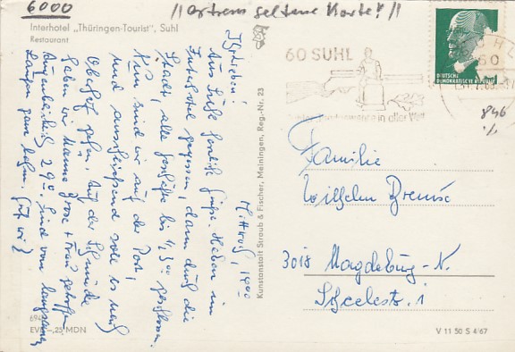Suhl in Thüringen Anlaß Postkarte Briefmarken