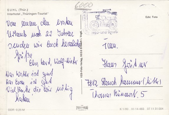 Suhl - Goldlauter Thüringen Postkarte mit Sonderstempel