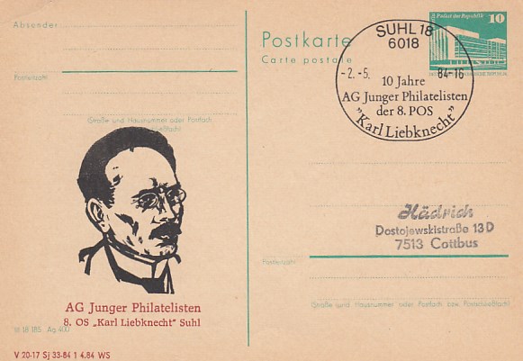 Suhl in Thüringen Anlaß Postkarte Karl Liebknecht