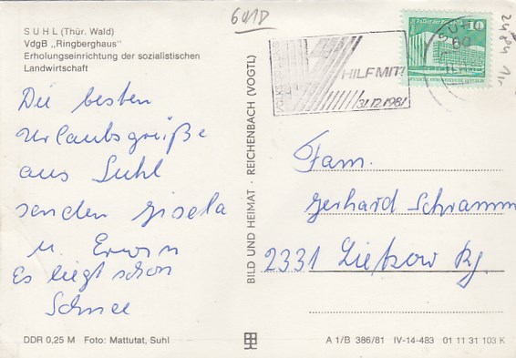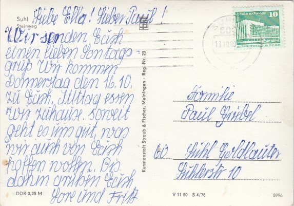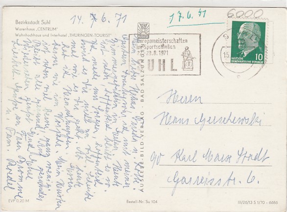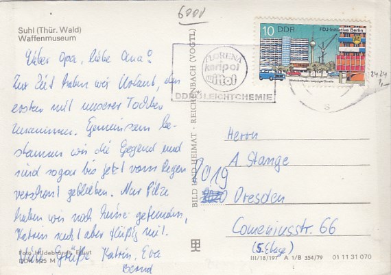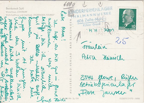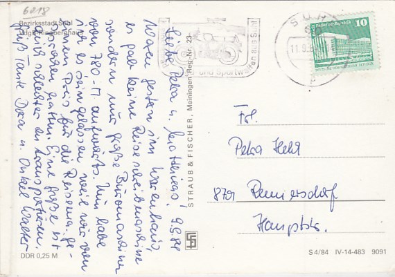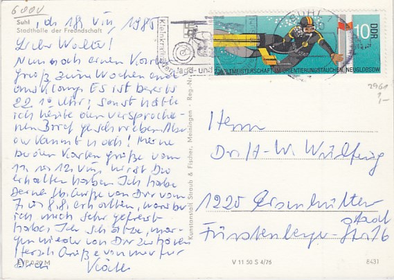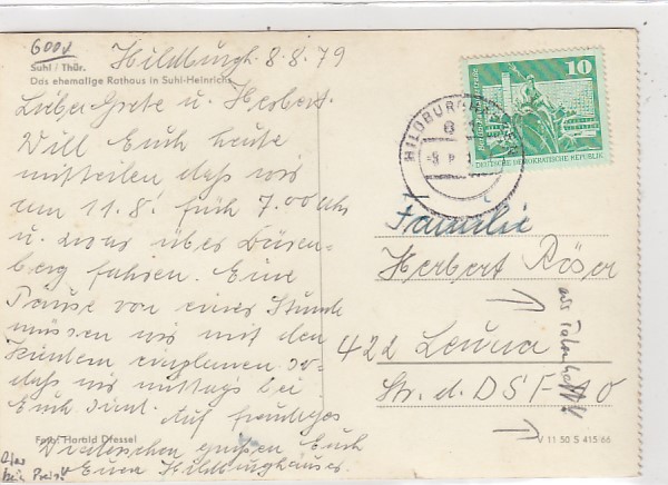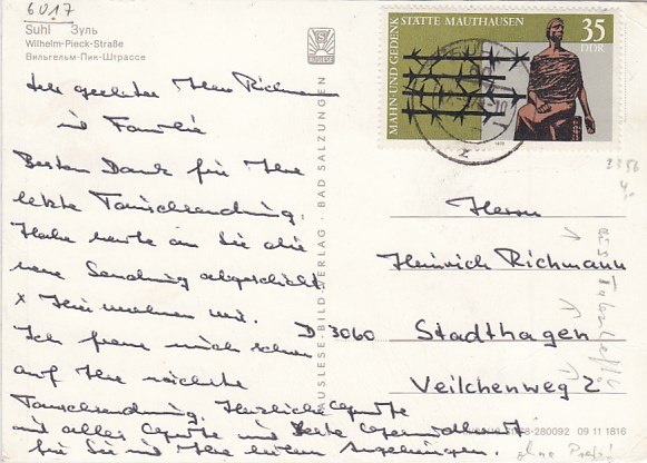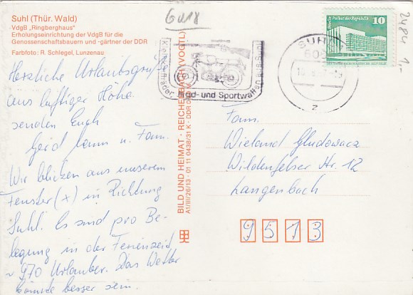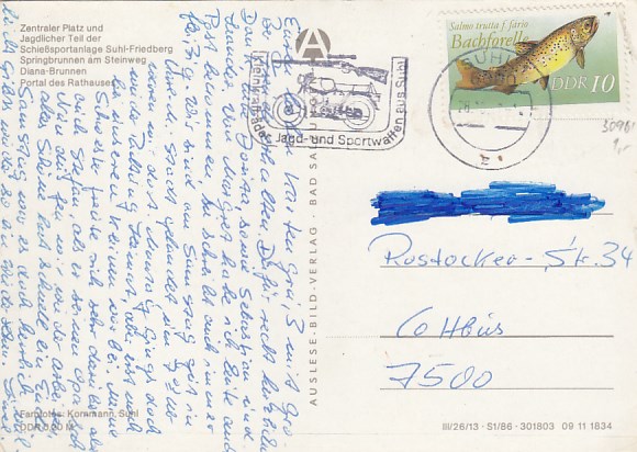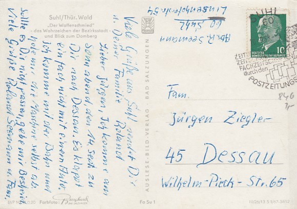 Suhl in Thüringen Postkarte mit Sonderstempel