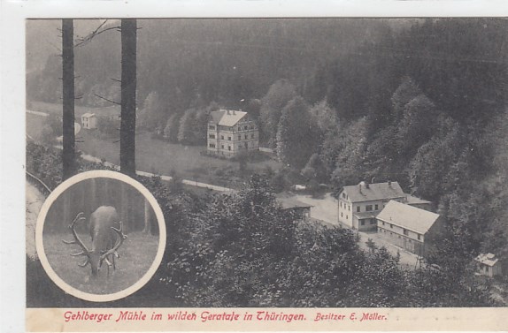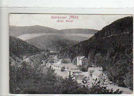 Gehlberg in Thüringen Gehlberger Mühle Litho Eisenbahn Bahnhof Bahnpoststempel Neudietendorf Lit