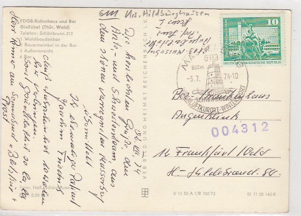 Gehlberg in Thüringen Gaststätte Schmücke 1974
