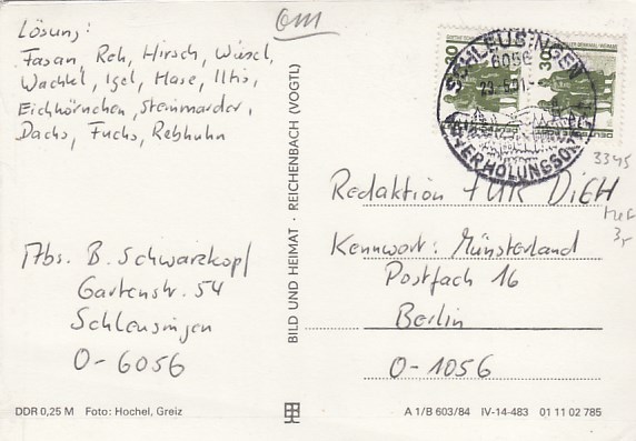 PLZ 01 u. 019 Bad Schandau Dresden Kamenz Tharandt Meißen Riesa->