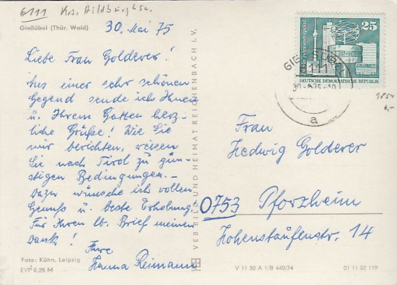 PLZ 07 Eisenberg Gera Greiz Schleiz Jena Schwarzburg Saalfeld->