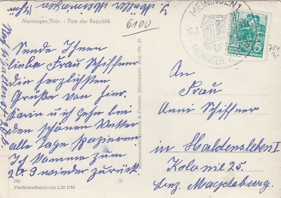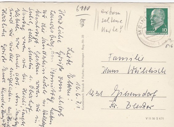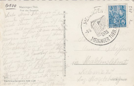 Meiningen in Thüringen Postkarte mit Anlaß Sonderstempel