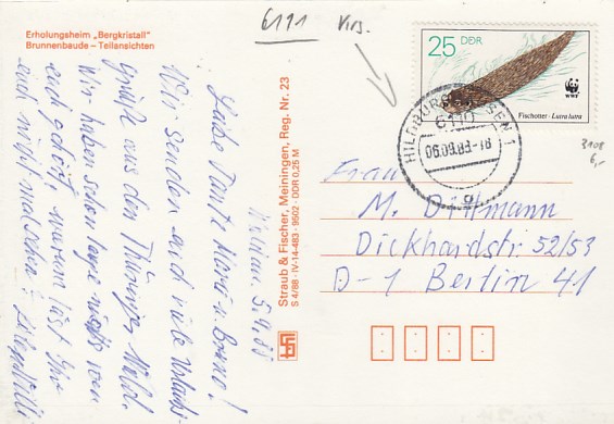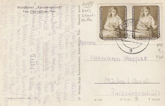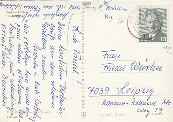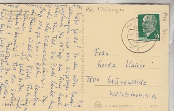 Waffenrod-Hinterrod Thüringen mit Landpoststempel An der Weinberghütte 1960