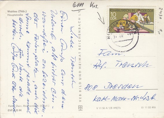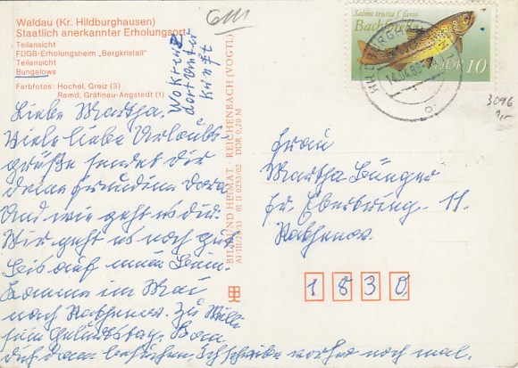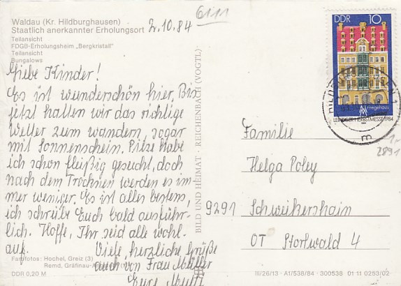 Waffenrod-Hinterrod Thüringen mit Landpoststempel 1960