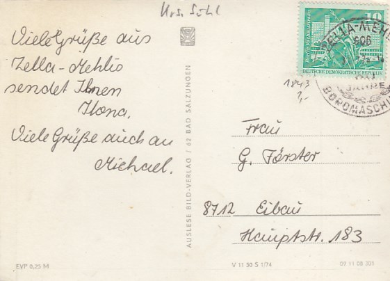 Zella-Mehlis in Thüringen Anlaß Postkarte