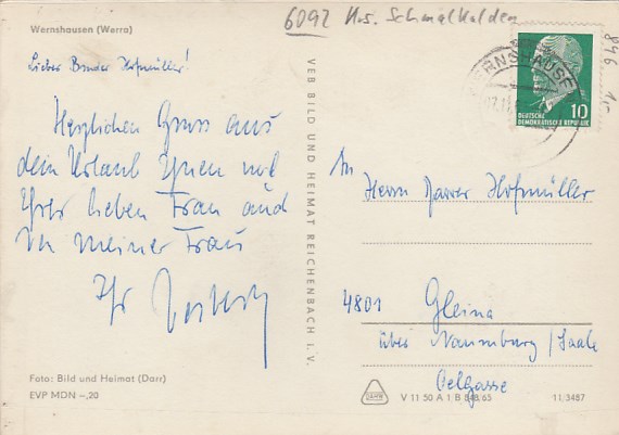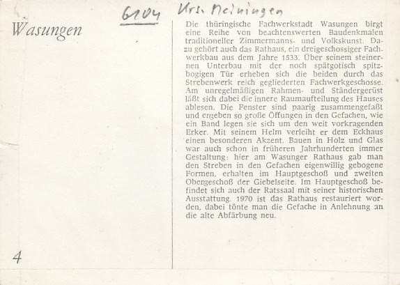 Wasungen Werra in Thüringen Rückseite mit Geschichte