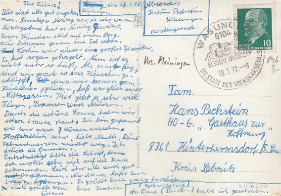PLZ 18-19 Bad Wilsnack Güstrow Rostock Schwerin Warnemünde->