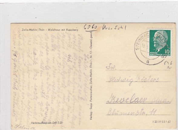 Zella-Mehlis in Thüringen Kaltenbrunner Stein 1961