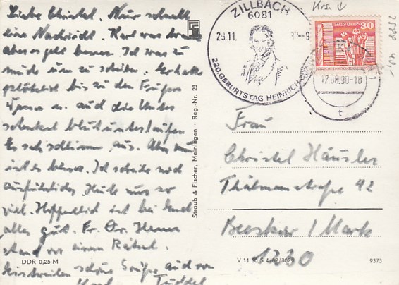 Zillbach bei Schwallungen in Thüringen Liederkarte 1985