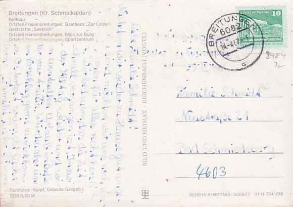 PLZ 36 u. 98 Bad Salzungen Ilmenau Oberhof Suhl Schmalkalden