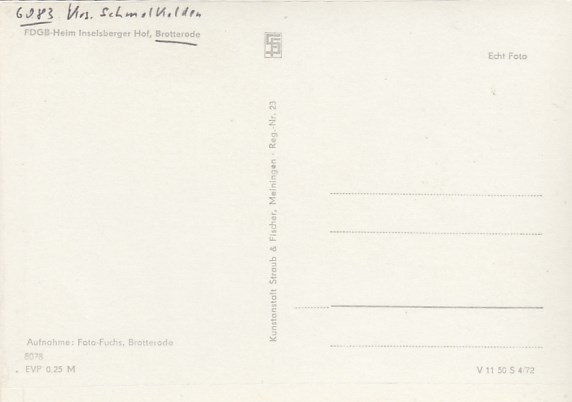 Brotterode in Thüringen Ferienheim Kleiner Inselberg 1971