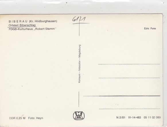 Biberau OT Biberschlag in Thüringen Kulturhaus 1971