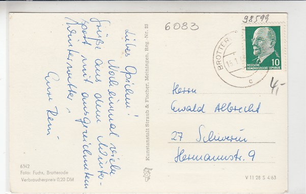 Brotterode Thüringen Pension Berggarten 1962