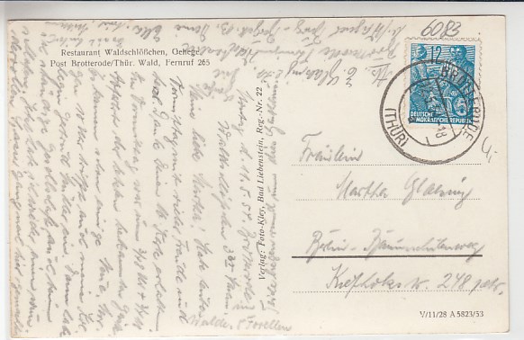 Brotterode Thüringen Restaurant Waldschlößchen Gehege 1953