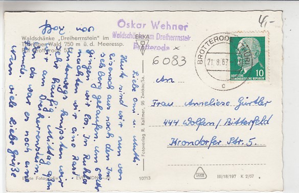 Brotterode Thüringen Waldbaude Dreiherrnstein 1967