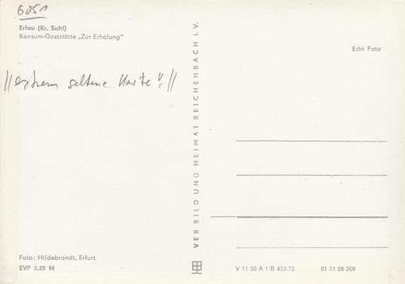 Erlau in Thüringen Konsum-Gaststätte Zur Erholung 1972