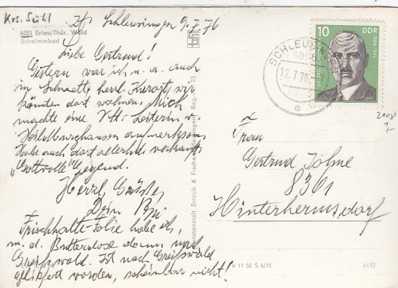 Erlau in Thüringen Gasthaus zur grünen Erle 1972