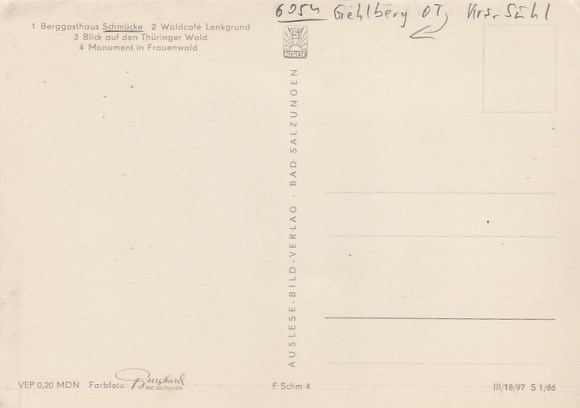 Gehlberg in Thüringen Gaststätte Schmücke 1963
