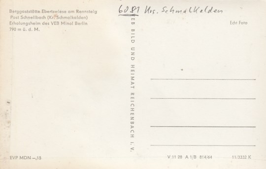 Gaststätte Ebertwiese am Rennsteig bei Schnellbach Thüringen1964