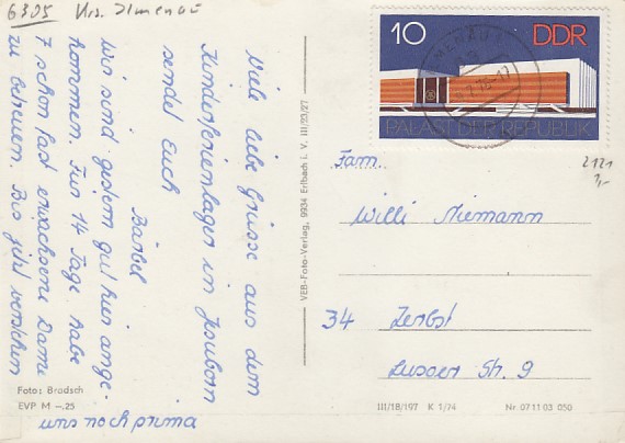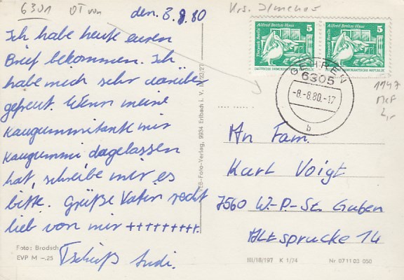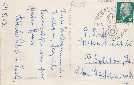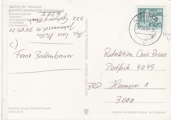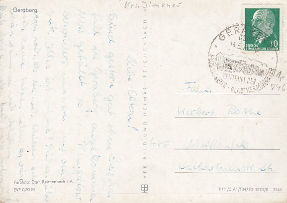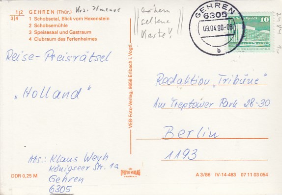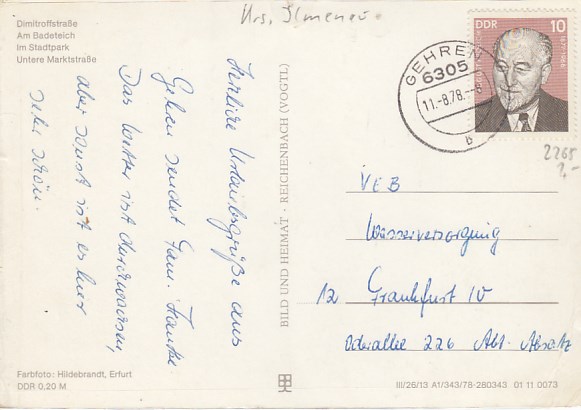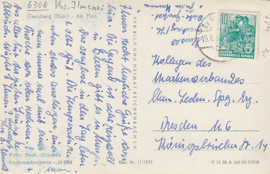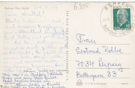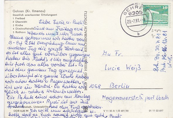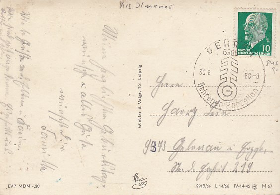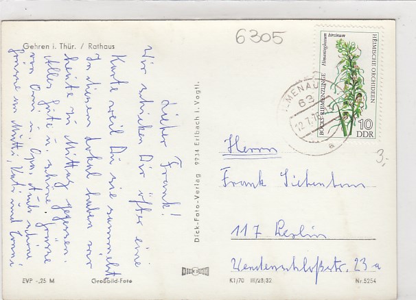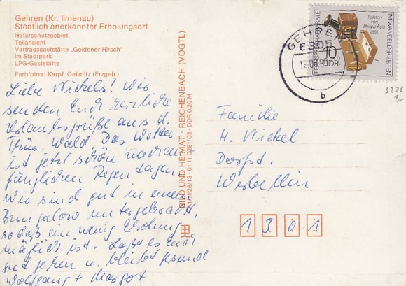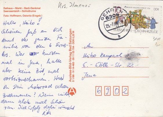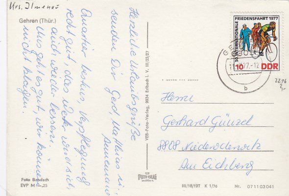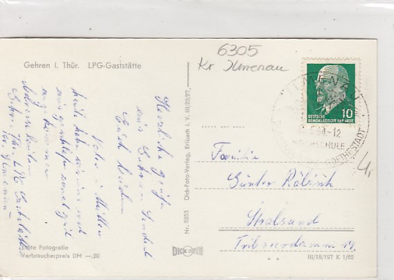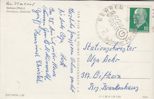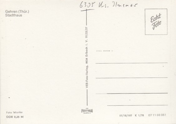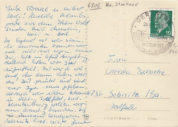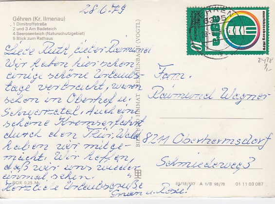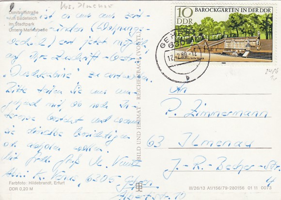 Gehren - Großbreitenbach Thüringen Eisenbahn Bahnhof Postkarte Bahnpoststempel 1983