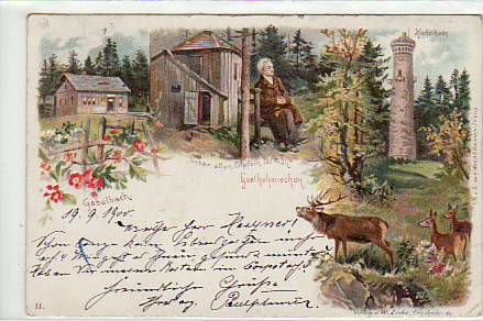 Ilmenau in Thüringen Göthe und Kickelhahn Litho 1900