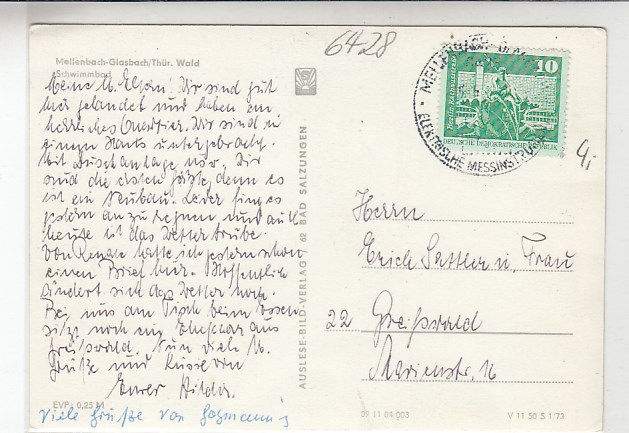 Mellenbach - Glasbach Thüringen OT Obstfelderschmiede 1957