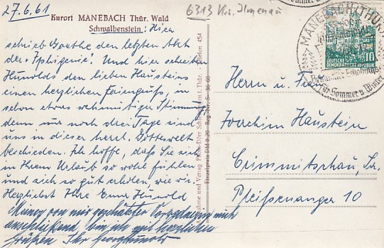 Manebach Thüringen Berggasthaus Schöffenhaus 1967