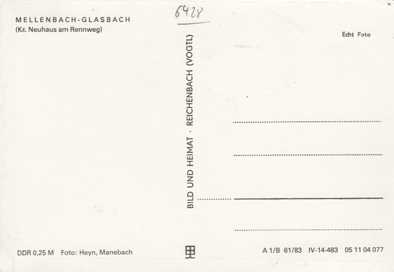 Mellenbach - Glasbach Thüringen OT Blumenau ca 1965