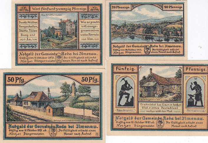2290 [6301ono] |  | Roda bei Ilmenau Thüringen 4 Scheine Notgeld ca 1920 | 4.00EUR | In den Warenkorb |