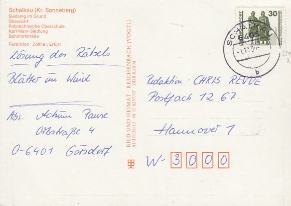 PLZ 08 Auerbach Brambach Crimmitschau Zwickau Plauen Vogtland->