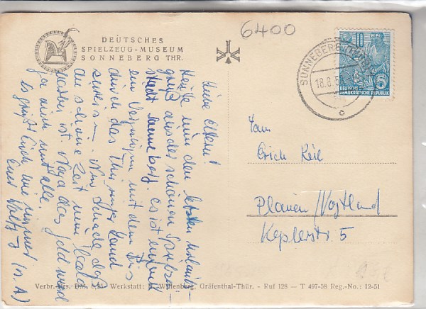 Sonneberg Thüringen Spielzeug-Museum 1952