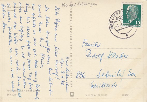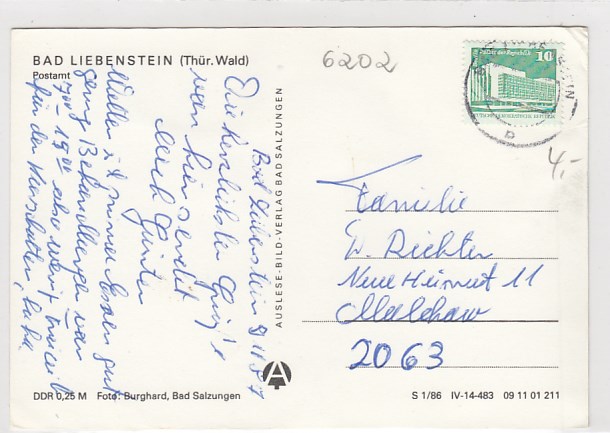 Bad Liebenstein in Thüringen Postamt 1982