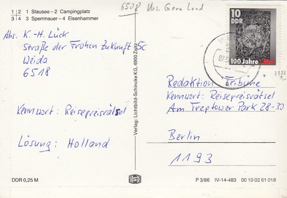 PLZ 07 Eisenberg Gera Greiz Schleiz Jena Schwarzburg Saalfeld