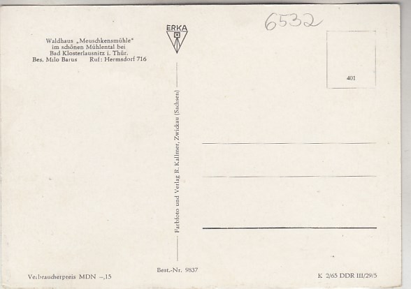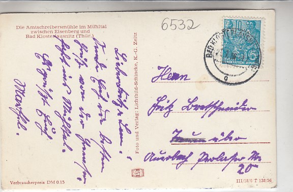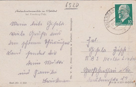 Amtsschreibermühle im Mühltal bei Eisenberg in Thüringen 1953
