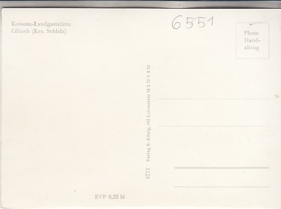 Eßbach Konsum Gaststätte Kreis Schleiz Thüringen 1963