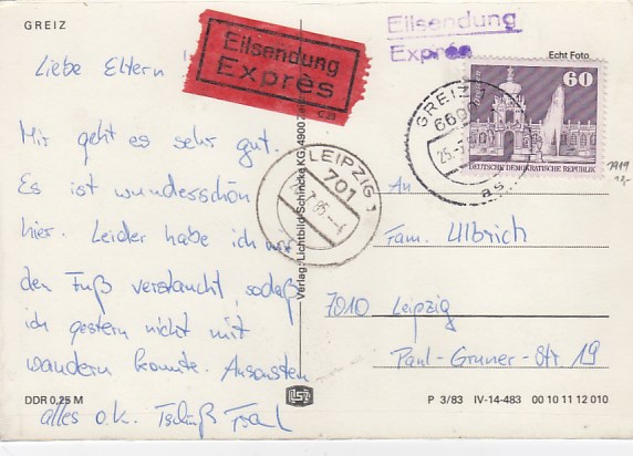 PLZ 07 Eisenberg Gera Greiz Schleiz Jena Schwarzburg Saalfeld