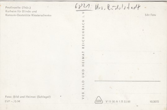 523 [6821o321] |  | Königsee-Rottenbach OT Paulinzella in Thüringen Gaststätte Klosterschenke 1968 | 4.00EUR | In den Warenkorb |