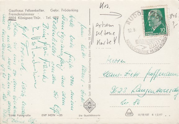 506 [6824o33] |  | Königsee Thüringen Gasthaus Felsenkeller 1967 | 3.00EUR | In den Warenkorb |