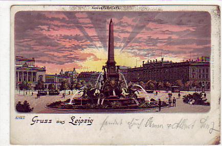 Leipzig Litho Ansichtskarte Bruno Bürger Künstlerkarte Augustusplatz Vorläufer AK 1896