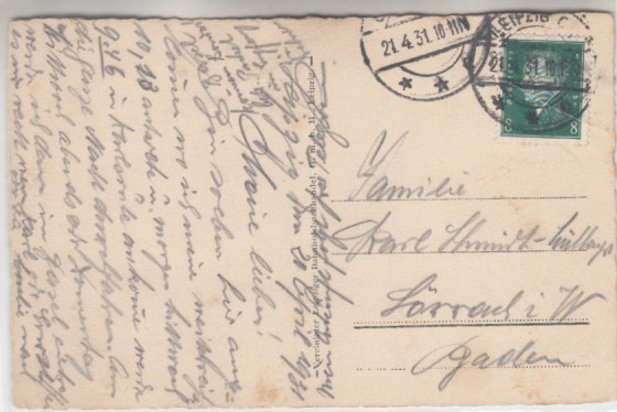 Leipzig Künstlerkarte Studienrat Friedrich Gruhl 1932